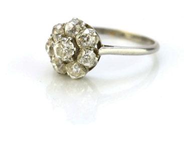 designed as twenty brilliant cut diamonds claw set in white metal to white metal shank, not stamped, ring size O 1/2, weight approx 4.1g