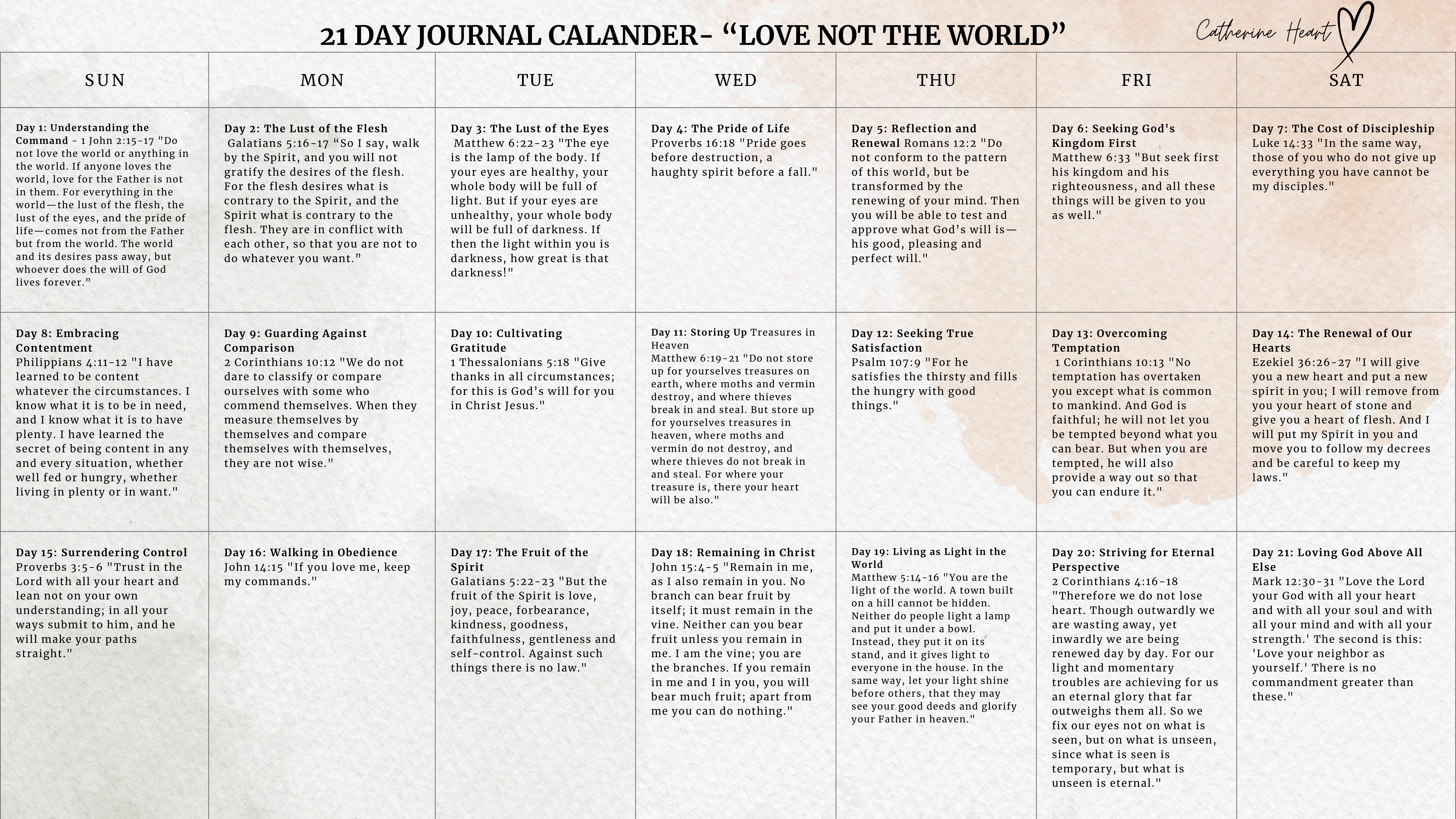 21 Day Calendar- Love Not the World