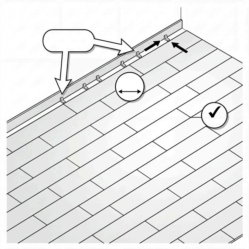 Zorg dat het eerste paneel minimaal 25 cm lang is Laat de kopse naden verspringen ten opzichte van de vorige rij voor een stabiel en natuurlijk resultaat