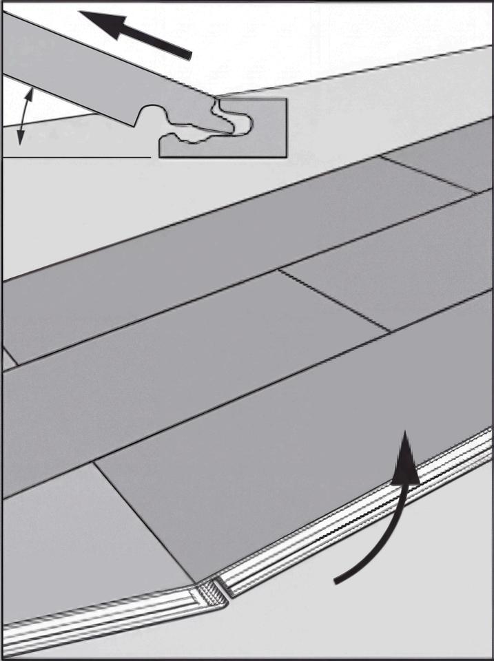 Plaats het paneel onder een hoek van 20–30° ten opzichte van het reeds liggende paneel Laat het paneel rustig zakken zodat de lange zijde vastklikt