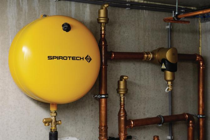 For heating engineers working on light commercial projects and renewable installations, Spirotech has added to its SpiroExpand range of pressurisation solutions Currently available in five sizes, from 4 litres up to 25 litres, the new pressure expansion vessel with fixed gas filling features a highquality bellows membrane which prevents the system water from coming into contact with the sheet metal wall of the vessel. This clever design helps to reduce corrosion from occurring inside the vessel and can maintain optimum pressure up to five time more efficiently than expansions vessels with a standard flat membrane