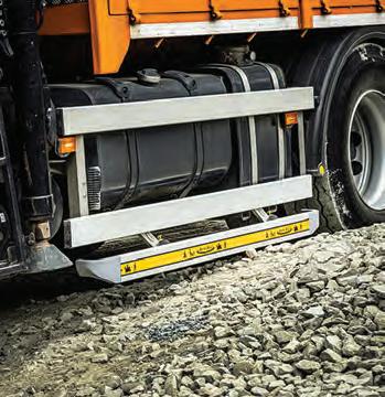 This is where RotaRail comes in, closing off the potentially hazardous gap between axles. Its patented hinge mechanism allows the system to swing backward or forward to avoid obstacles such as uneven ground or speed humps, before automatically returning to its locked vertical position.