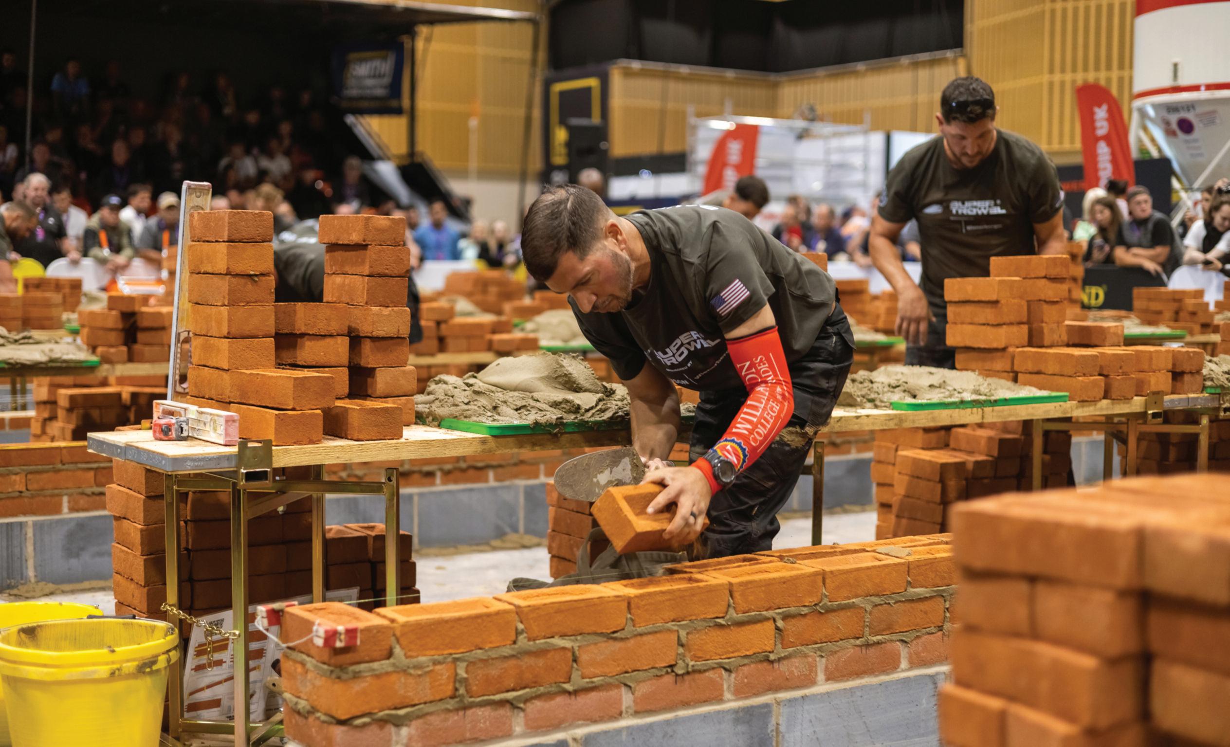 The main competition itself had the 12 brickie contestants laying as many bricks as they could on the set course in an hour After this hour, (and a muchdeserved break) there’s then a jointing up period While the ultimate goal is to lay the most bricks, accuracy and precision is absolutely key too For bricks that aren’t level, damaged, or out of place, the 17 judges deduct a set number of bricks from the overall total These judges are all volunteers and absolute veterans of the trade themselves In fact, head judge Peter Roberts received a lifetime achievement award for his services to the industry at the event
