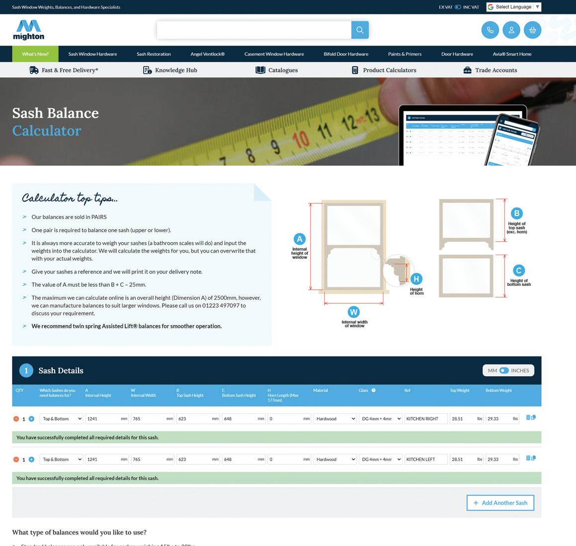 “Prior to the Calculators, if you wanted to establish the sash weights, you would need to remove them and weigh them” adds Mark, “which inevitably meant a lot of additional work and time”In addition to the Product Calculators, Mighton can also promise the personal touch with dedicated experts available who know the range inside out.