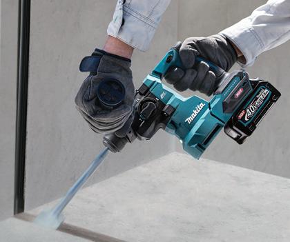 The HR010GZ 40VMax XGT Brushless 20mm Rotary Hammer from Makita provides power and performance for overhead and horizontal drilling applications. The rotary hammer uses Bluetooth for wireless power-on and power-off and is equipped with Anti-Vibration Technology and an anti-vibration side grip for comfort.
