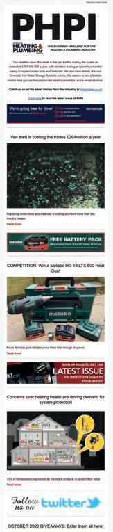 The Professional Heating and Plumbing Installer email newsletter is sent out weekly to 20,000 active installers. It is designed to keep them updated on all the latest and most relevant content to hit the site. There are four prominent banner positions available to advertisers on each newsletter: