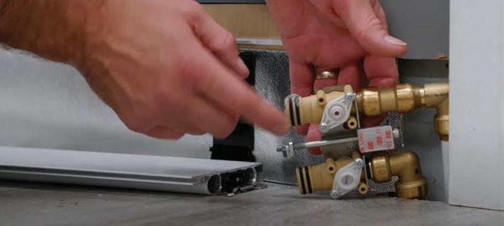TOP TIP: If you cut a ‘dummy’ piece of ThermaSkirt and insert the TRV assembly, you can offer it up to the pipework and mark where the pipes need to be cut.