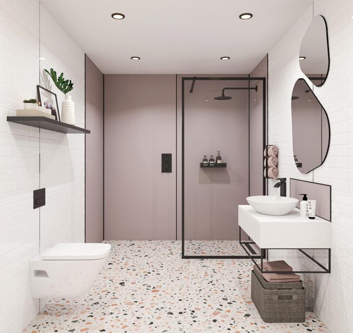 Installers can also benefit from a range of coordinating splashbacks, vanity worktops and shelving. Wetwall’s new Alloy splashbacks are sized to fit the most popular sink sizes without any need for cutting, while every worktop is supplied with antibacterial surface protection as standard, designed to slow the growth of up to 99% of bacteria.
