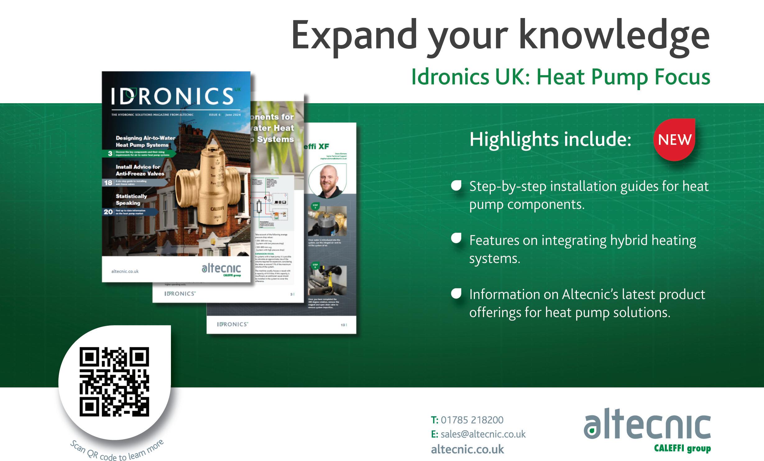 Altecnic Ltd has launched the sixth issue of technical journal, Idronics UK. This latest edition focuses on heat pump systems, providing essential information on air-to-water heat pump design, advice on componentry and relevant updates for the industry.