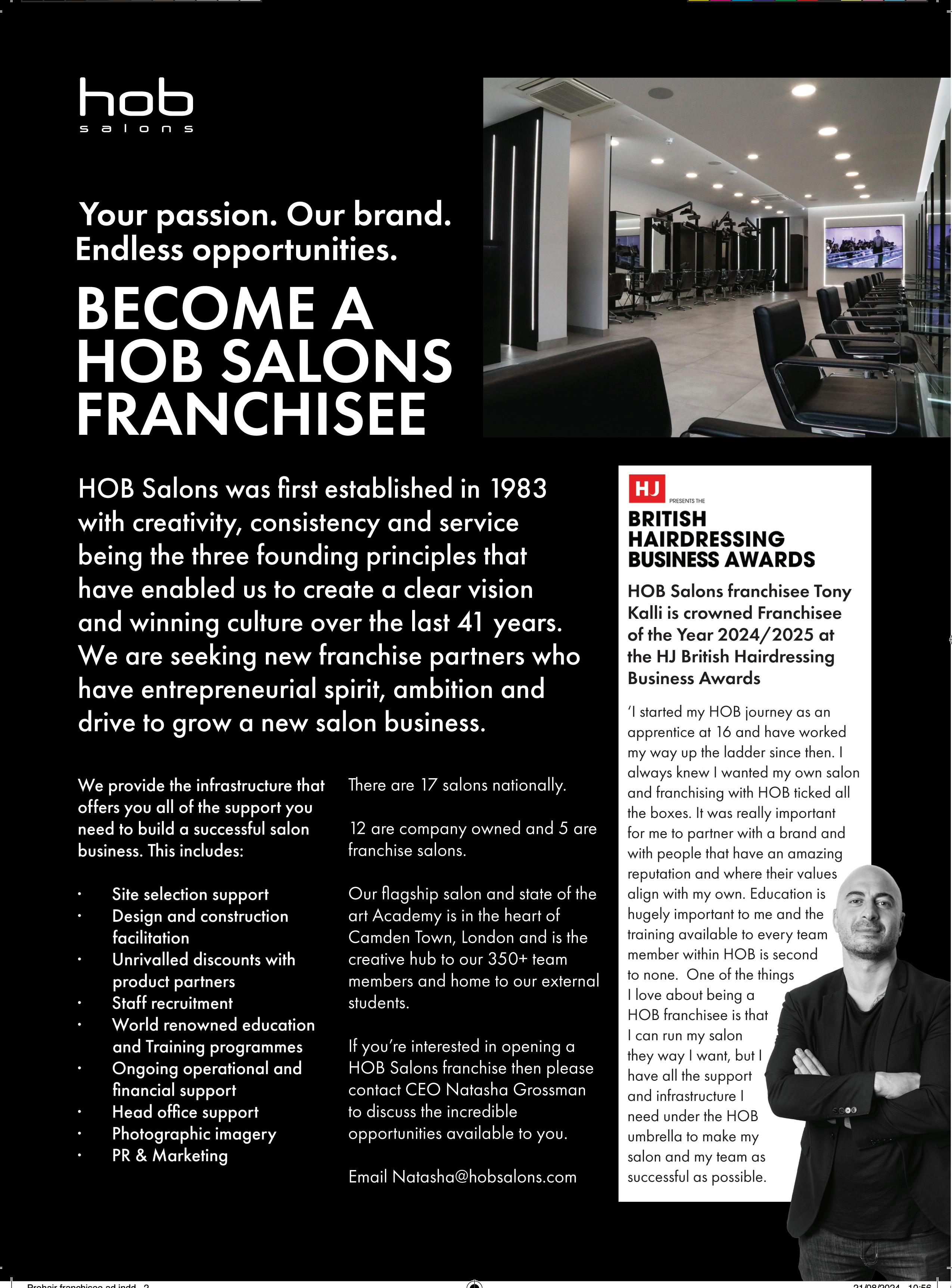 Subscriptions to Professional Hairdresser are available at the following rates: UK: 1 year –£30 post paid Europe and Overseas: 1 year –£50 post paid Airmail: 1 year –£80 post paid. To be removed from this magazine’s circulation please call 01923 237799 or email circulation@hamerville.co.uk.