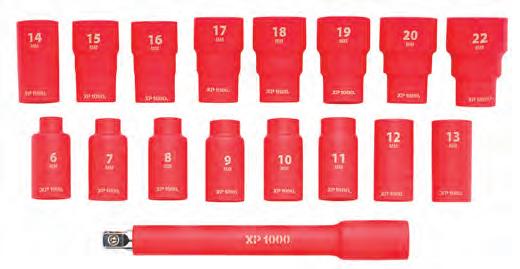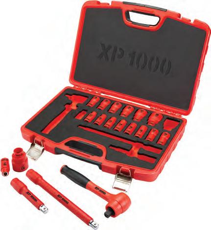 A highlight of XP1000 automotive range for EV and hybrids is its three comprehensive VDE socket eets in 3/8 in, ½ in, and ¼ in. size. The VDE sets all come securely packed in a tough blow mould case, for easy storage and portability. The high-quality closed cell