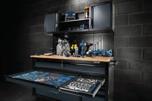 Giving you even greater flexibility in the garage are the 12 new modular racking and shelving systems in a variety of configurations. There is everything from individual heavy-duty steel shelving options through to storage combos with pegboards and floor cabinets included. Choose from premium quality hardwood or stainless-steel shelves and a range of different lengths to suit all spaces. Simply select the number of shelf tiers you need and start restoring some order and organisation to your garage.