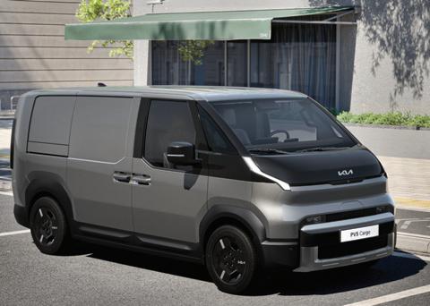 The exterior design of the Kia PV5 Cargo van has been unveiled. Its makers describe it as a bold and futuristic look, with black geometric wheel arch claddings and rocker panels. The corners of the sturdy lower bumper are interchangeable, serving both aesthetic and protective functions. The PV5 also features a single lift-up tailgate door.