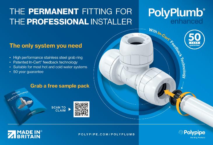 Billed as the only system your customers will need, PolyPlumb enhanced features a high-performance stainless-steel grab ring and patented In-Cert feedback technology that is suitable for most hot and cold water systems With a 50-year guarantee, free sample packs are available to test out the benefits www rdr link/mbz035