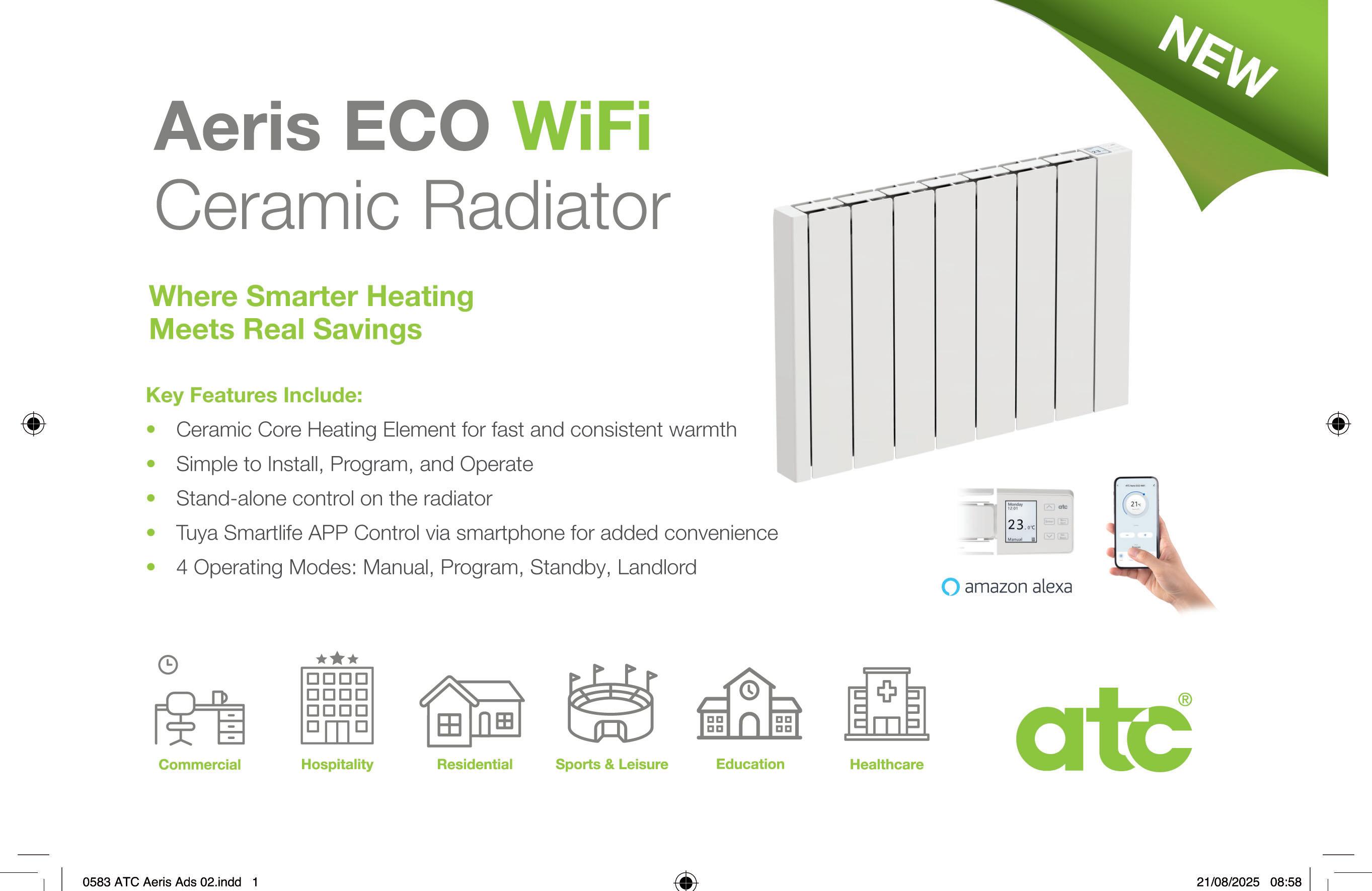 ATC has introduced the newest addition to its product range – the AERIS ECO WiFi Ceramic Radiator.
