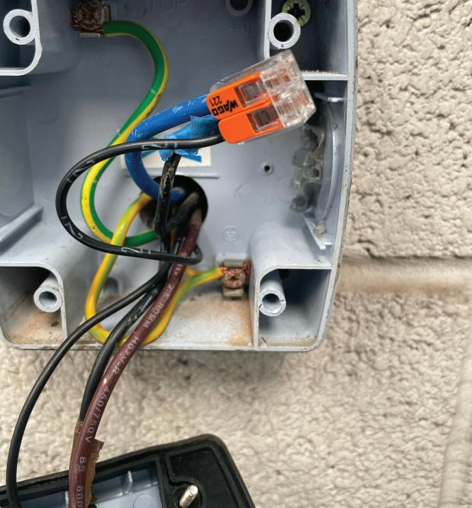 BENNETT: NO EARTH ON THESE PIT LIGHTS. WHEN WE TOOK THE SWITCH APART WE FOUND THIS THE TWO EARTHS WERE CONNECTED EITHER SIDE OF THE PLASTIC BOX, THE SWITCH HAS BEEN REPLACED AND THE EARTH CONNECTED TOGETHER WHERE CABLES ENTER THE BOX
