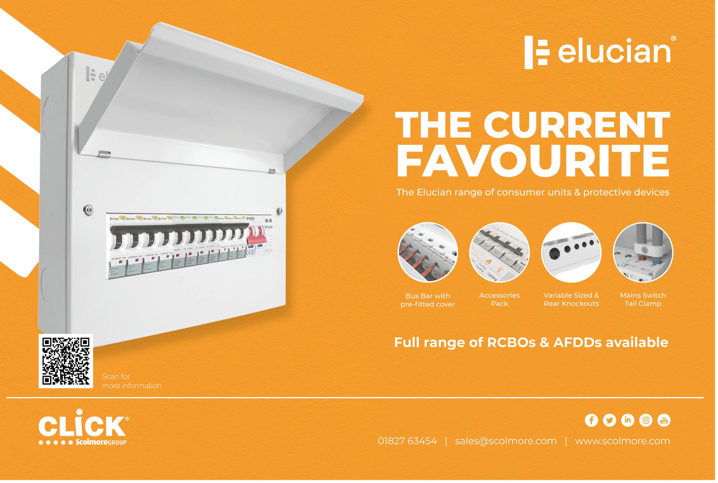 Click Scolmore continues to enhance its Elucian consumer unit range to satisfy installer demand and has now extended its garage units offering to include a new 5 way metal garage unit fitted with a 100 A mains switch. This unit supplied with 100 A mains switch (3 free Ways) has been added to the range to ensure selectivity can be achieved when being fed from an upstream RCD/RCBO It’s also fitted with a pre-installed tail clamp which is designed to ensure there’s no undue strain on incoming meter tail cables Combining practicality and convenience for the contractor as well as ensuring a hassle-free installation, these units are typically used as an extension to an existing consumer unit but can also be used in isolation Applications include garages, house and loft extensions, sheds and workshops.