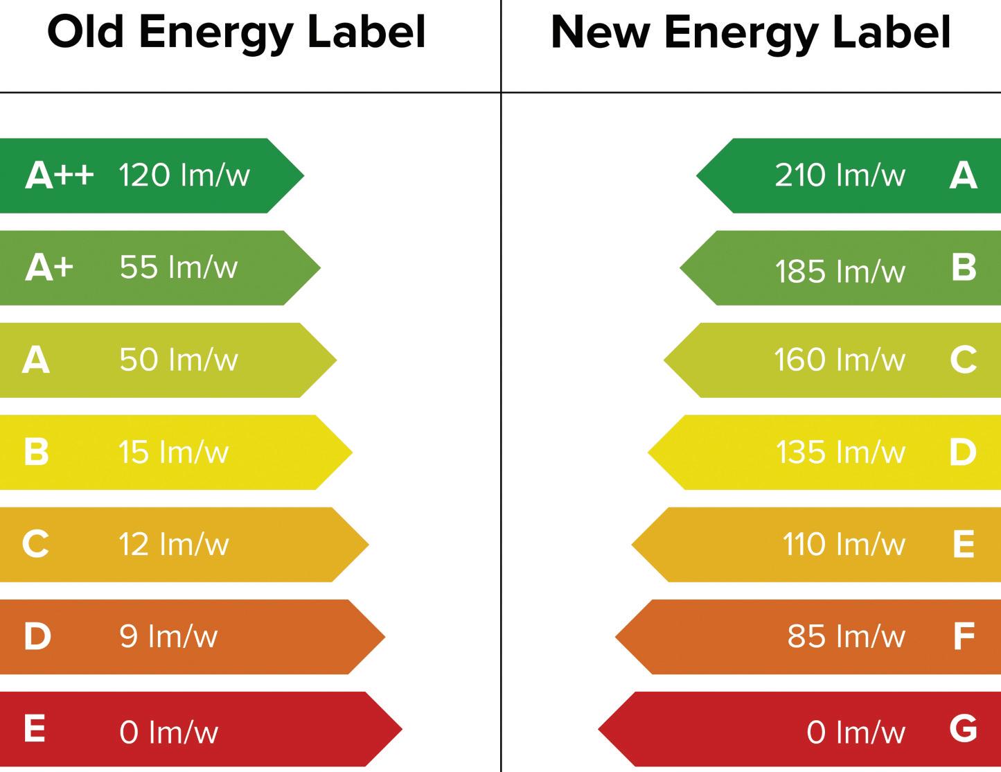 42 What has changed with the energy ratings displayed on light bulbs?