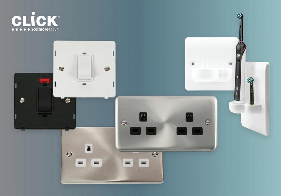 Click Scolmore has introduced a variety of new products to its comprehensive wiring accessories portfolio This includes the Deco and Deco Plus decorative unswitched socket outlets, the 50 A Definity control switch inserts and the Mode in-wall toothbrush chargers