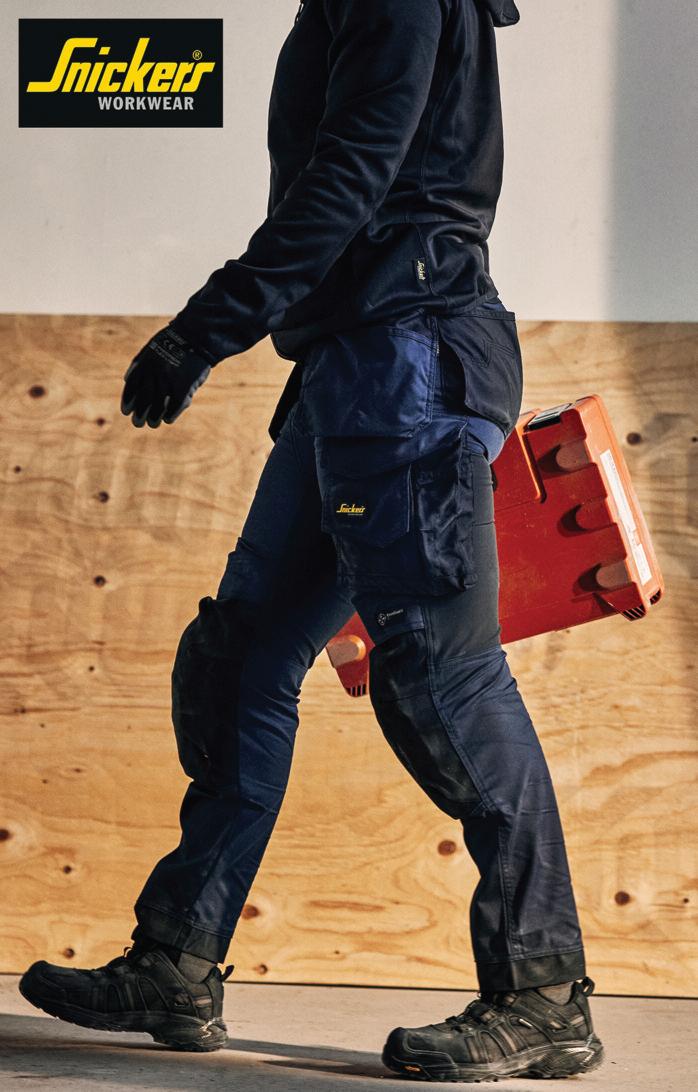 These new AllroundWork trousers combine 4-way stretch and Sorona fabrics to deliver functionality and a street-smart, slim-fit look They have integral windproof softshell material and thin, elastic panels working together to provide wind protection, freedom of movement and efficient ventilation What’s more, the patented Snickers Workwear KneeGuard system plus stretchable CORDURA reinforcements at the knees and the leg endings deliver extra durability and prevent moisture absorption. Ideal for active work outside, they’re just the ticket for the fast-paced professional who’s always on the go.