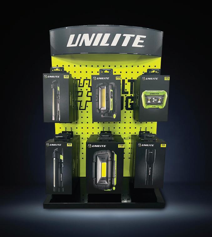 Unilite’s range of display solutions are tailored to meet the diverse needs of retailers. At the forefront of the line-up is a large floor-standing metal display stand, proudly bearing the "Built Tough" tagline. Featuring two downlights, 24 hooks, a spacious shelf and a clothes rail, this robust display stand offers ample space to showcase a wide array of Unilite products, from head torches, work lights, utility knives, workwear, tool bags and much more. You can now also buy Veto Pro Pac tool bags from Unilite and this large stand offers the perfect opportunity for displaying the two brands together. Designed to catch the eye and stimulate impulse purchases, this robust display stand is a game-changer for retailers looking to make a lasting impression on their customers.