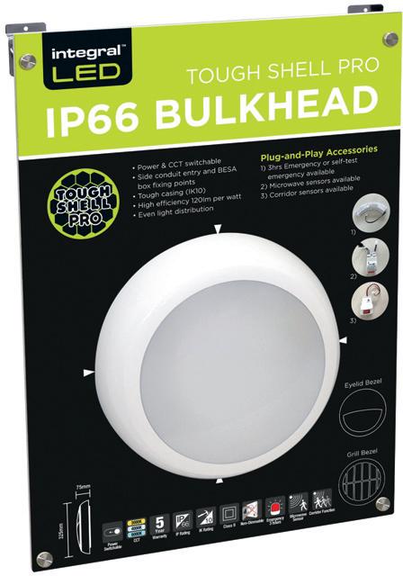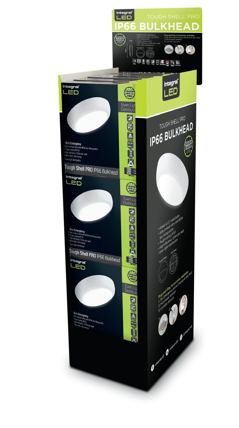 Integral LED has launched two brandnew POS displays to go alongside its modular bulkhead, the Integral LED Tough Shell Pro, crafted to grab attention and provide a visually compelling showcase of this innovative lighting series. Featuring the unmistakable Integral LED branding in bright green and black, these displays ensure customers instantly recognise and trust the quality and reliability that the Tough Shell Pro represents.