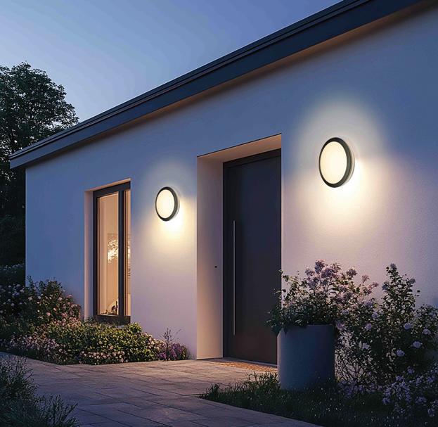 ● The GALI round bulkhead also comes in a gold or silver finish. This light is also IP44 rated, and provides reliable illumination in all weather conditions. The bulkhead holds one E27 bulb, allowing users to choose the brightness and colour temperature that suits them. It is ideal for illuminating gardens, patios or entrance areas.