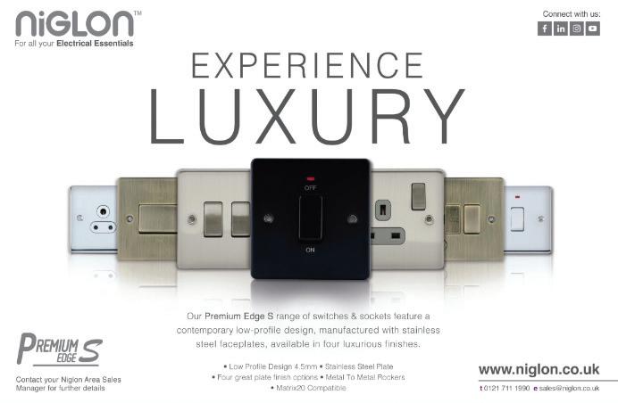 The spotlight is on Niglon’s Premium S Edge collection of switches and sockets this month, as the brand’s latest advertising campaign aims to increase awareness and sales at installer level. The products feature a contemporary low-profile design, manufactured with stainless steel faceplates and available in four luxurious finishes. The range also benefits from metal to metal rockers, plus it boasts Matrix20 compatibility.