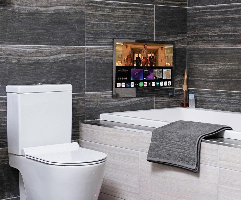 The IP65 rated bathroom televisions deliver a 1080p HD display for a crystal-clear picture and built-in vibration speakers that project a high-quality sound. Combining a sleek and modern design with a range of advanced features to enhance viewing, the waterproof and dustproof TVs are designed for use in highmoisture environments and can withstand humidity, meaning users don’t need to worry about steam or splashing water. The innovative models benefit from a heated screen to minimise misting and condensation, and are designed to be seamlessly embedded into the bathroom wall for a sleek appearance. What’s more, the mirrored version will blend into any bathroom, as when it is not being used, it reverts to a bathroom mirror, making the technology near invisible.