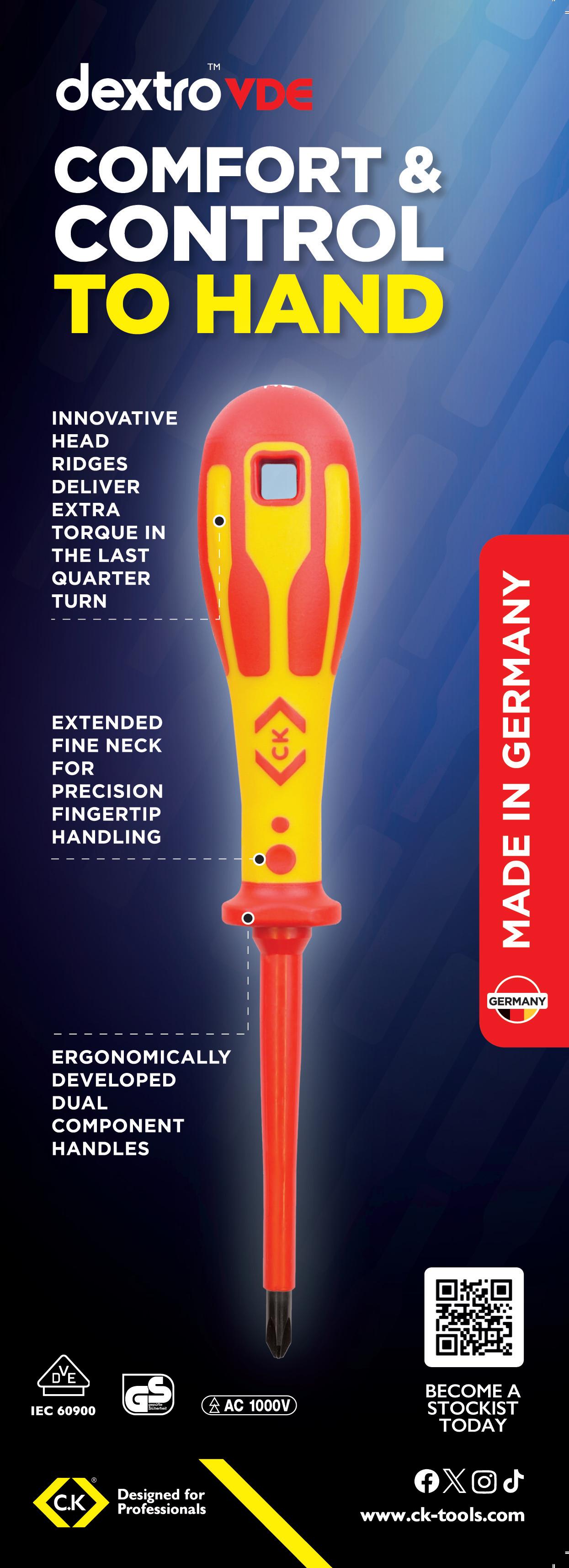 “Take it Easy” Tool Finder range. Launched earlier this year, each blade is colour-coded by profile and features laserengraved size indication to make it easier to identify the required tool quickly. Along with the revised colours, each blade has been redesigned to allow comfortable use without a handle. The palm of your hand is comfortably supported on the rounded shape of the rear end of the blades allowing quick spinning of the blade with light knurling on the shaft which accelerates the screwdriving process. Individual ‘Take it Easy’ Tool Finder blades are available now along with a Universal 1 17- piece set and a 26-piece Big Pack, both of which contain a blade-holding handle. They’ll soon be joined by two sets containing the new 837i RA, VDE Ratcheting handle.