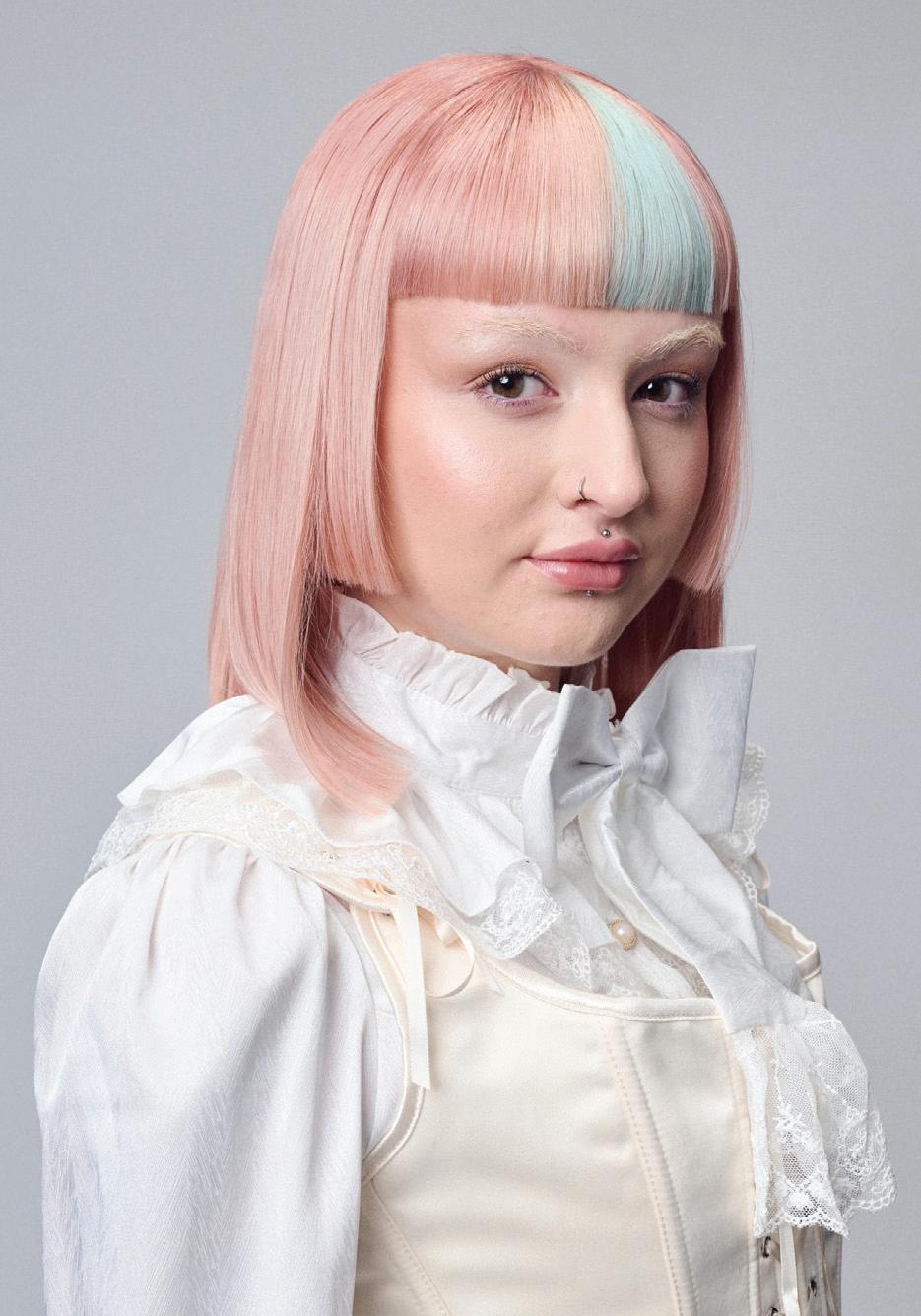 I think a lot of people know me for colour, especially a vivid or a blonde. It’s actually a bit of a joke in the salon as to how excited I get when somebody says they want colourful hair! I only really started creating vivids during lockdown, where I spent a lot of time playing around on doll heads and working on different techniques to discover my creative flair!