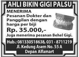 PENGOBATAN TOUR & TRAVEL TOUR JASA LOWONGAN AIRCONDITION PARANORMAL RUPA - RUPA S C A F O L D I N G SEWA MOBIL PERLENGKAPAN RUMAH DIJUAL SAWAH KERJASAMA DICARI MODAL UNTUK KLINIK MEDIS Rp. 100 Jt Bagi Hasil Rp. 3 Jt/bulan AKAD NOTARIS. Serius Hub. : Dr. DJAFAR. Raya Kutisari Utara 46 Surabaya, Telp : 081217185318 AIR ZAM-ZAM