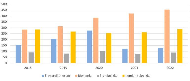 Tässä selvityksessä elintarvikealojen koulutuksen tarjonnan ja vetovoiman tarkastelu perustui pääasiallisesti Opetushallinnon tilastopalvelu Vipusesta saataviin tilastotietoihin. Tarkastelussa on pääsääntöisesti käytetty vuosia 2020–2022 koskevia tarjontatietoja (uudet opiskelijat, opiskelijat, tutkinnot) tässä luvussa ja luvussa 2.1 kuvatuilla rajauksilla. Ne olivat selvityksen valmisteluajankohtana tuoreimmat tiedot, jotka olivat käytettävissä koko kalenterivuodelta. Tarkasteluissa on pyritty siihen, että aina kun se on mahdollista, käytettävissä oleva aineisto olisi samalta vuodelta. Kun käytettävä tilastoaineisto on ajallisesti vertailukelpoista, voidaan muodostaa mahdollisimman kokonaisvaltainen kuva palvelukyvystä.