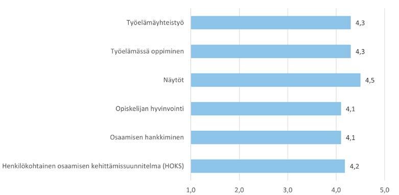 Ammatillisen koulutuksen järjestäjien, ammattikorkeakoulujen ja yliopistojen toiminnallisten edellytysten arvioinnissa hyödynnettiin erityyppisiä lähteitä. Yksi aineistokokonaisuus muodostui ammatillisen koulutuksen opiskelija- ja työelämäpalautteesta, ammattikorkeakoulujen AVOPpalautteesta ja uraseurantatiedoista sekä yliopistojen kandipalautteesta ja uraseurantatiedoista. Opetushallitus kerää ammatillisen koulutuksen opiskelijapalautetta jatkuvasti kahdella kyselyllä: aloituskyselyllä, jossa on 19 väittämää, sekä päättökyselyllä, jossa on 31 väittämää. Kyselyt lähetetään ARVO-järjestelmästä automaattisesti kaikille ammatillisen koulutuksen aloittaneille ja koulutuksensa päättäneille opiskelijoille. Opiskelijapalautteen tulokset raportoidaan Opetushallinnon tilastopalvelu Vipusessa. Tiedot päivittyvät kolmen kuukauden välein. Riittävien havaintomäärien varmistamiseksi tässä selvityksessä elintarvikealaan liittyviä opiskelijapalautteita tarkasteltiin kahden ja puolen vuoden ajanjaksolta (1.7.2020–31.12.2022).