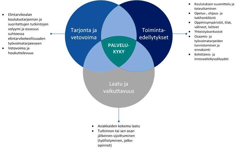 Kuvio 1. Elintarvikealan koulutuksen palvelukyvyn tarkastelu-ulottuvuudet.