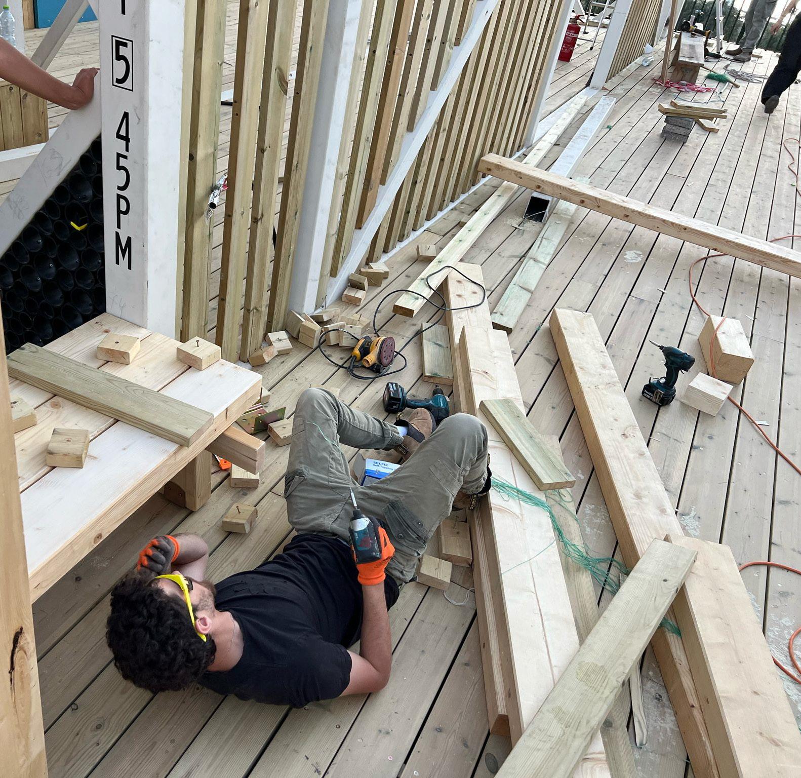 The design-build process required continuous decision-making on site, adapting intentions to real materials and real constraints. Several concepts from the individual design phase were implemented directly in the final structure.