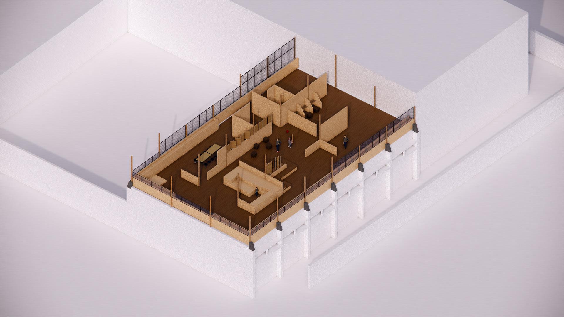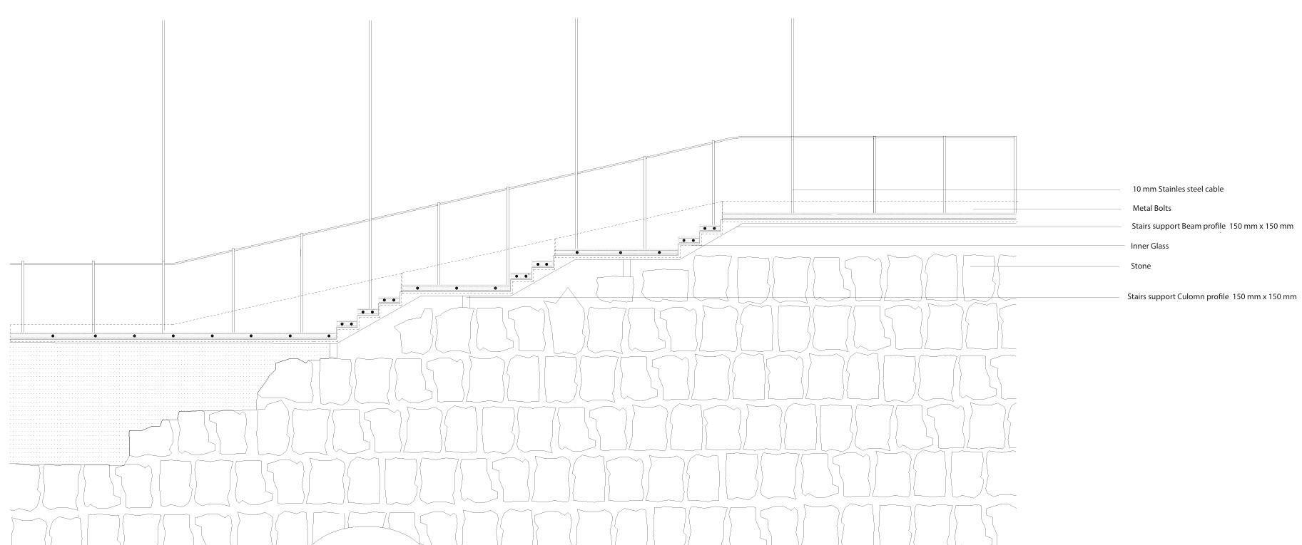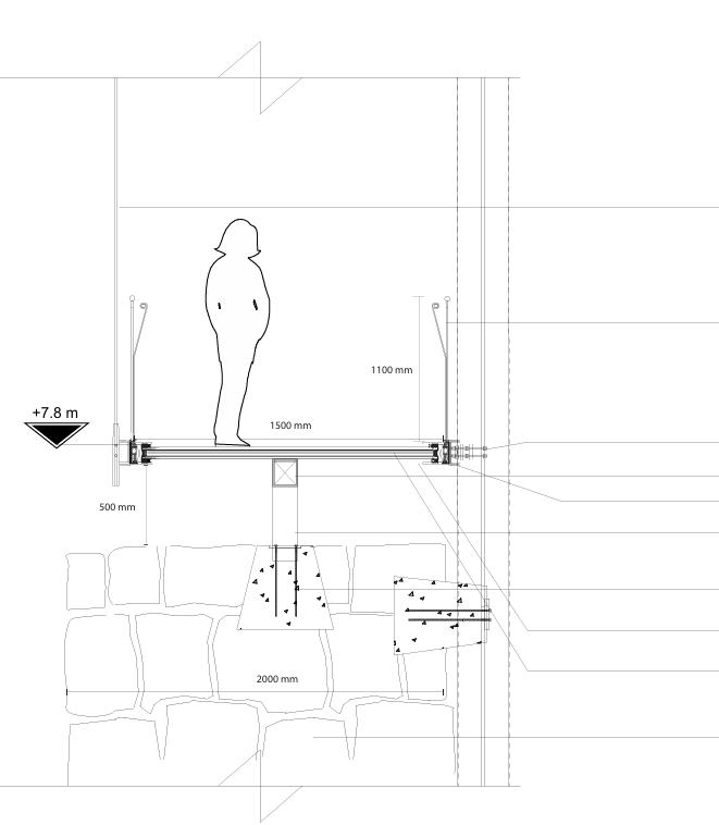 The proposal introduces a multi-leveled circulation system that moves through, above, and around the medieval structure. Views open inward toward the historic core and outward toward the surrounding landscape simultaneously. The building is experienced in layers — you are always inside history and outside it at the same time.
