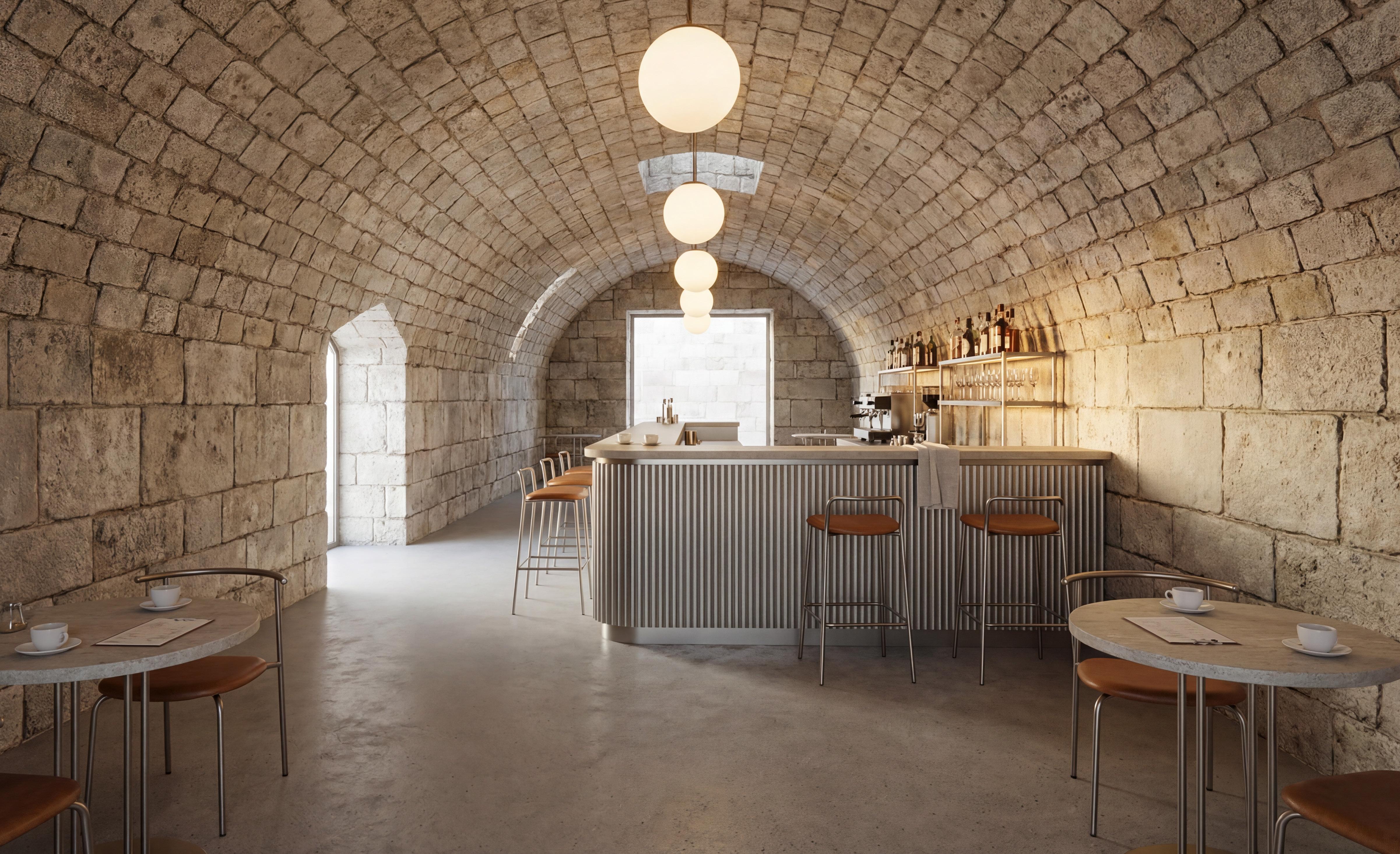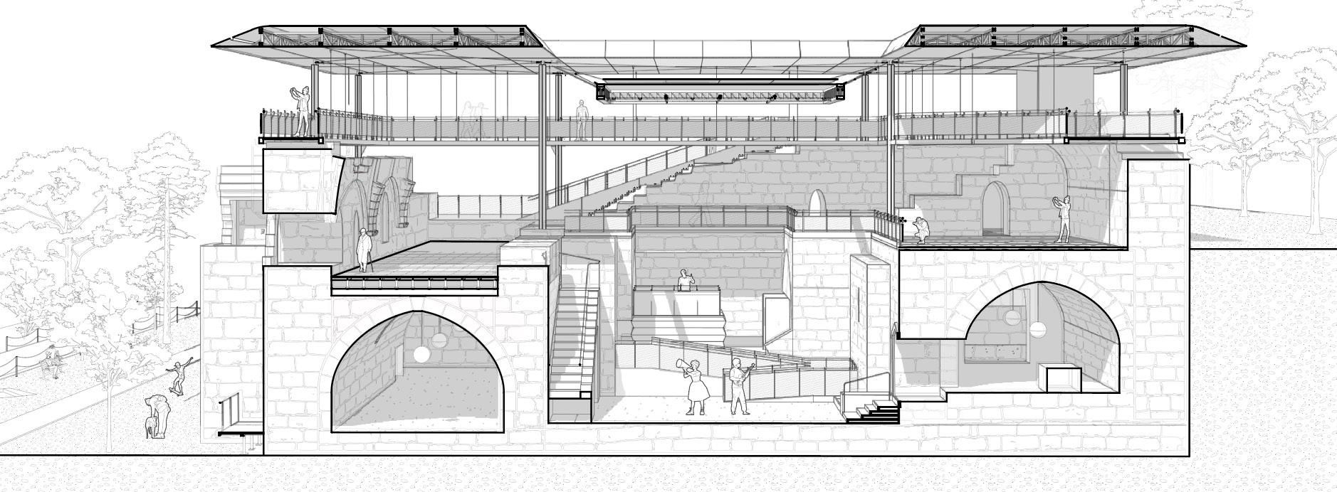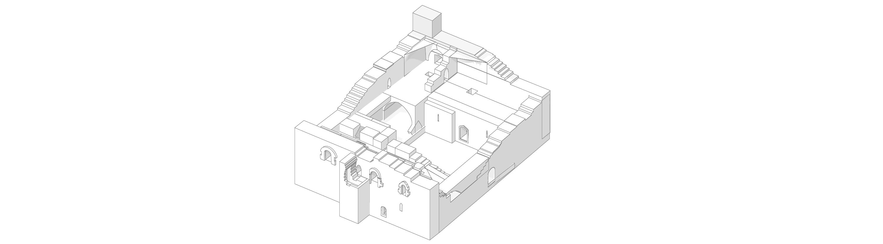 Working through 3D scanning, on-site documentation, and material analysis, the project reconstructs the spatial logic of Ein Hemed — its stone thicknesses, its vaulted interiors, its relationship to the landscape — and uses them as the foundation for a contemporary intervention.