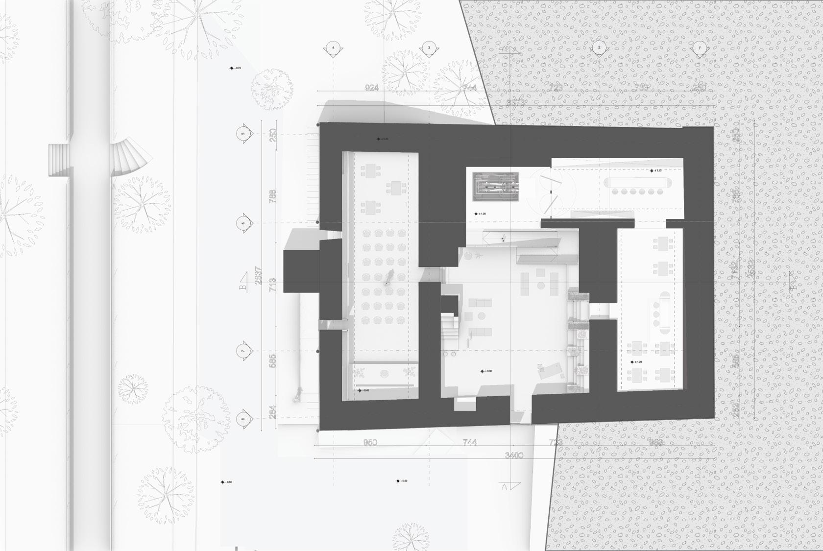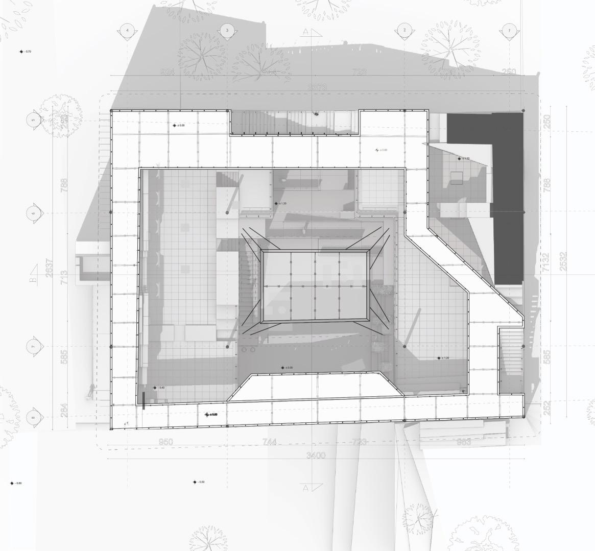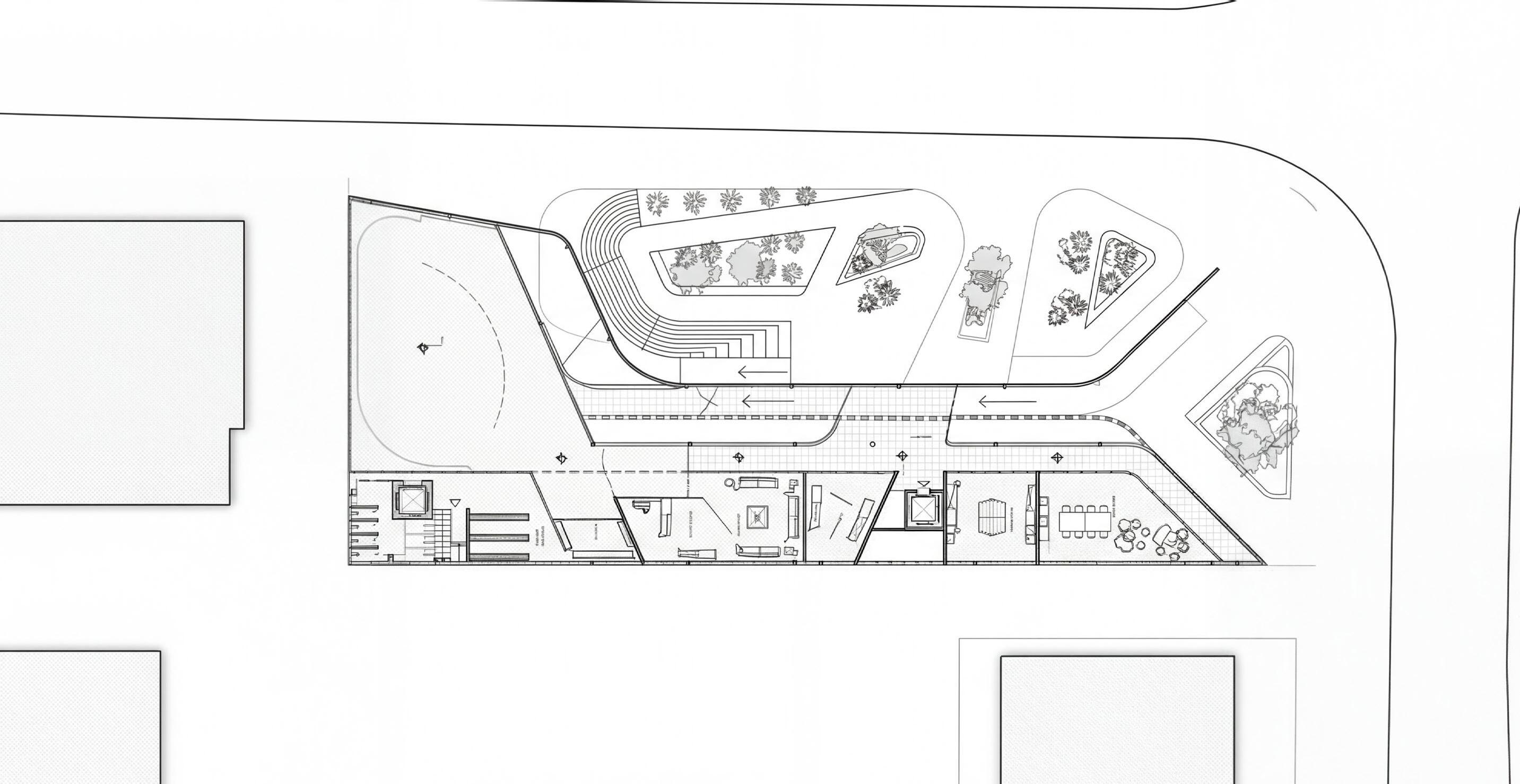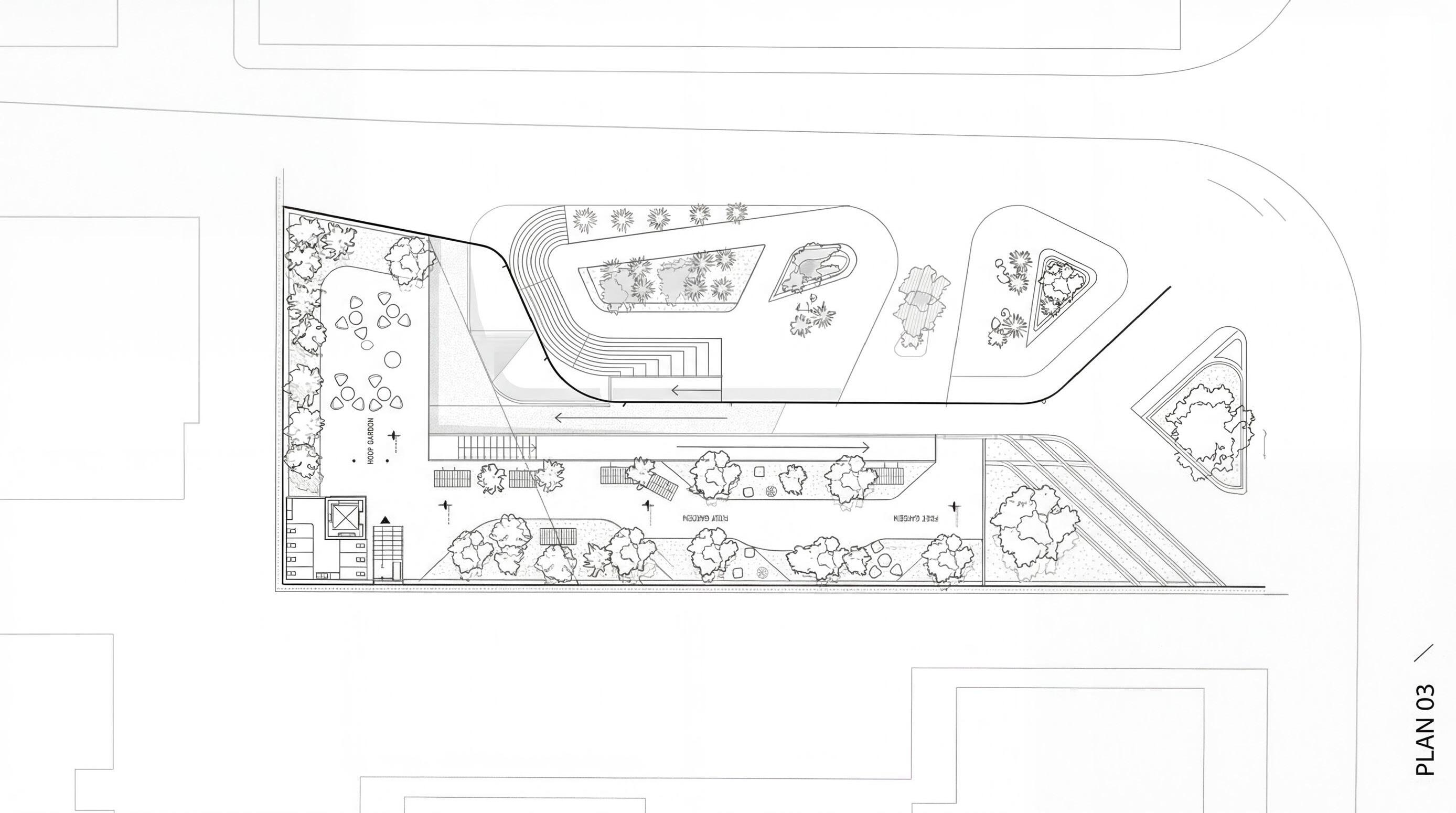 Instead of imposing rigid geometry, the design approach allows the building to adapt itself to the existing trees, using them as spatial anchors that shape circulation, structure, and enclosure.