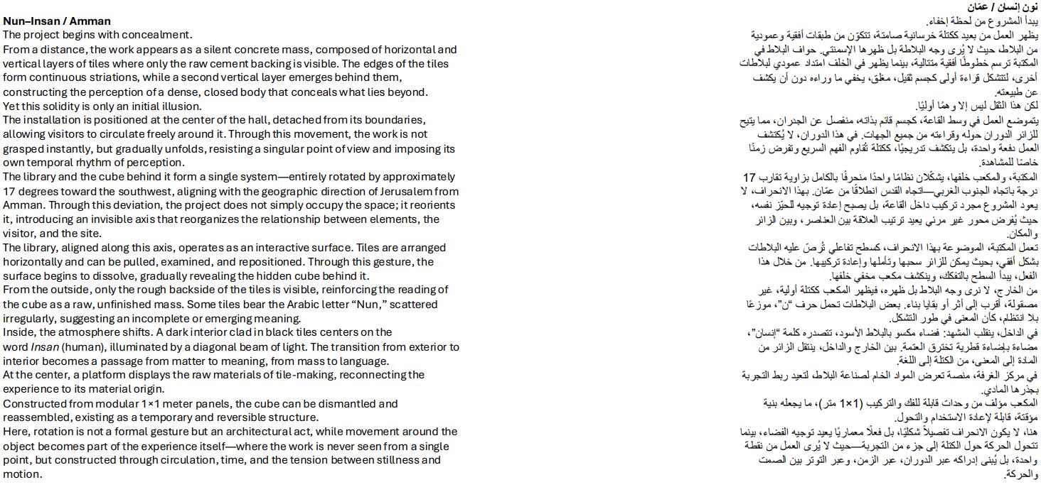 He is co-founder of Diarco.io, a spatial tech startup, and is currently completing his B.Sc. at the Technion ahead of pursuing a Master’s in Architecture in London. His long-term aim is to build on the precedent of spaces like AAU Anastas’ Wonder Cabinet in Bethlehem — not institutions that represent Palestinian life, but ones that produce from within it — establishing a creative and spatial practice that gives communities the infrastructure to express, heal, and author their own narratives.