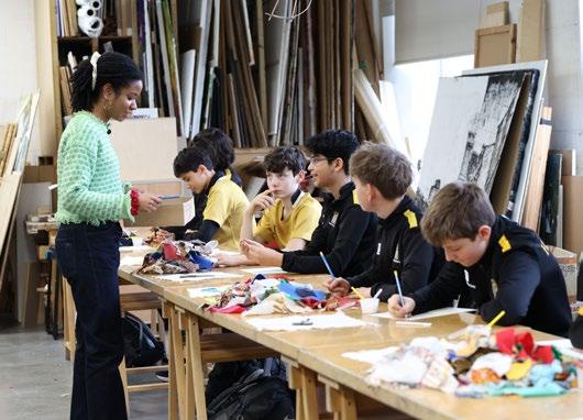 Hands-on workshops included clay throwing and tie-dye printing, and Second Years worked with textile artist Jahnavi Iniss, exploring identity and heritage for a collaborative mural. A popular competition to design a neckerchief for Harris, the School dog, rounded off the week.