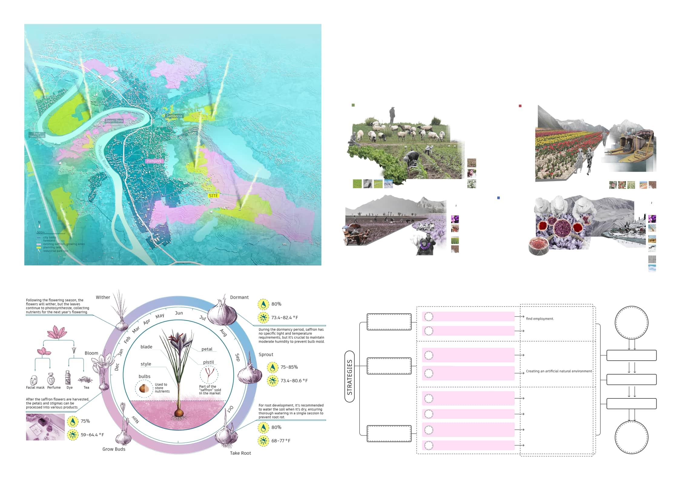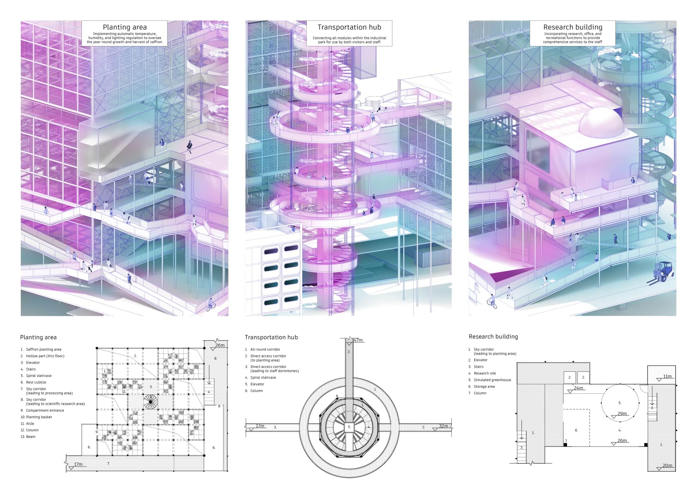 Building upon the saffron growth cycle, the architectural design organizes spaces and circulation paths tailored to different user groups, ensuring that the programmatic layout responds both to ecological rhythms and to social needs.