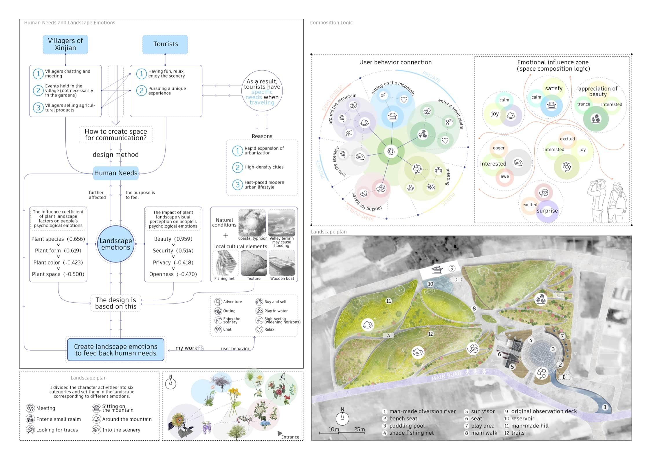 These cultural elements are deeply rooted in nature, leading me to formulate a design strategy with the goal of "natural healing." I plan to convey the emotions of the landscape by constructing various interactive elements with nature to help people achieve mental and physical relaxation.