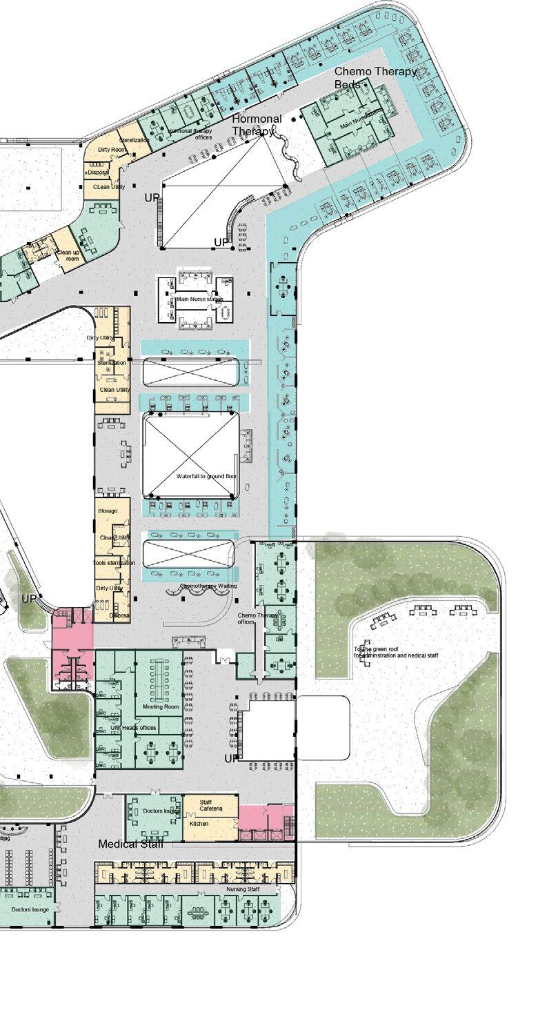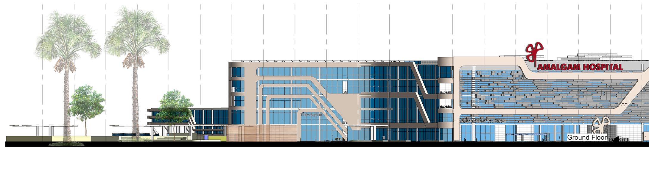 Amalgam is an integrated oncological hospital that is located in Nexus Medical City. Amalgam Integrates conventional therapies and complementary and alternative thera pies (CAMs). CAMs are used through design alongside conventional medical treatments to provide phycological support to its patients throught their healing journey. Radiations and light were the major and only common aspect to heal both tumor and soul.