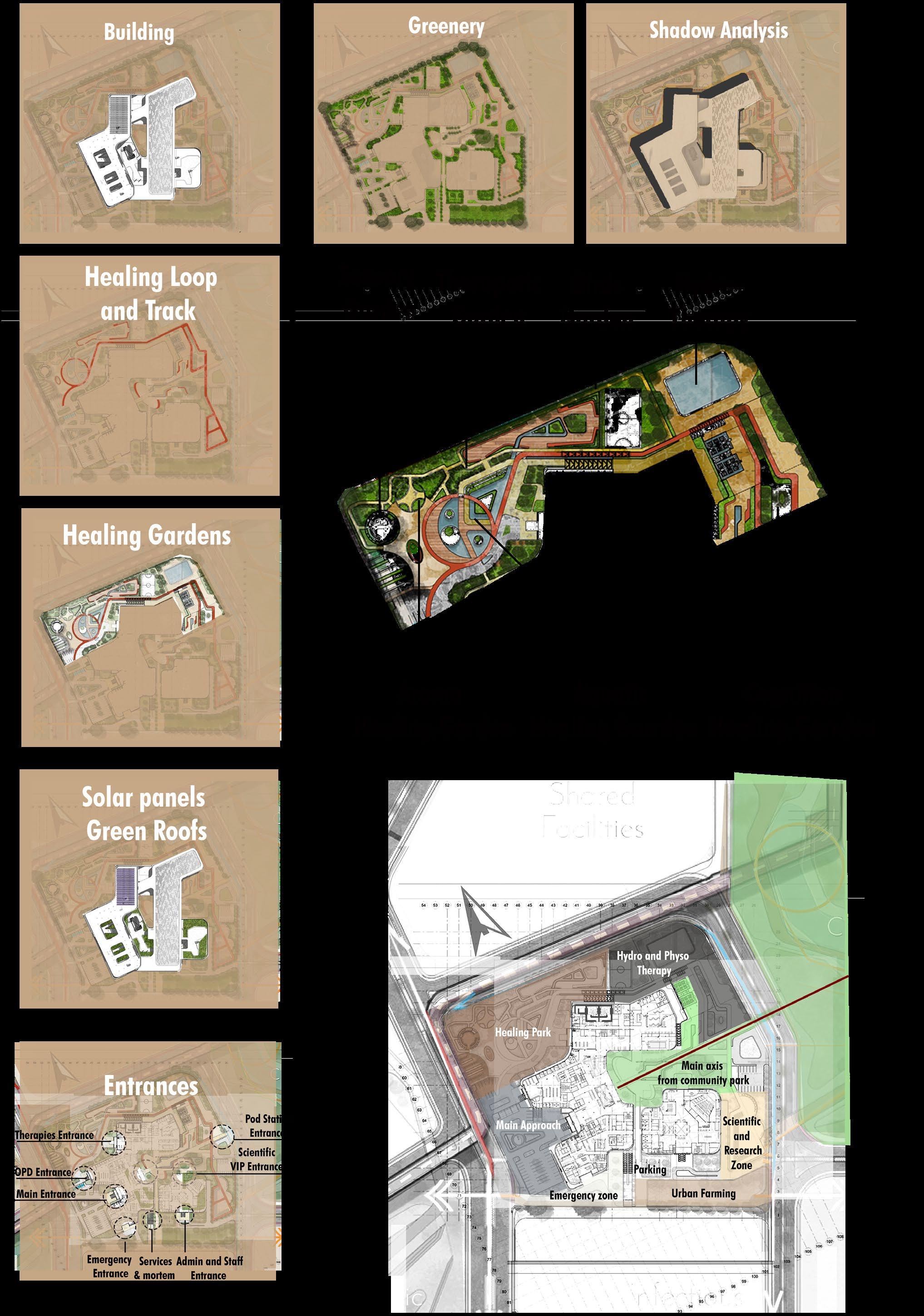This is an architectural proposal of a Medical City located in Egypt’s New Administrative Capital. The proposal provides a merge between sustain ability, digitalization and integration of healthcare facilities. The master plan proposal area is 540 Acres. The design was conducted as a group work and then individual plots were designed by each team member.
