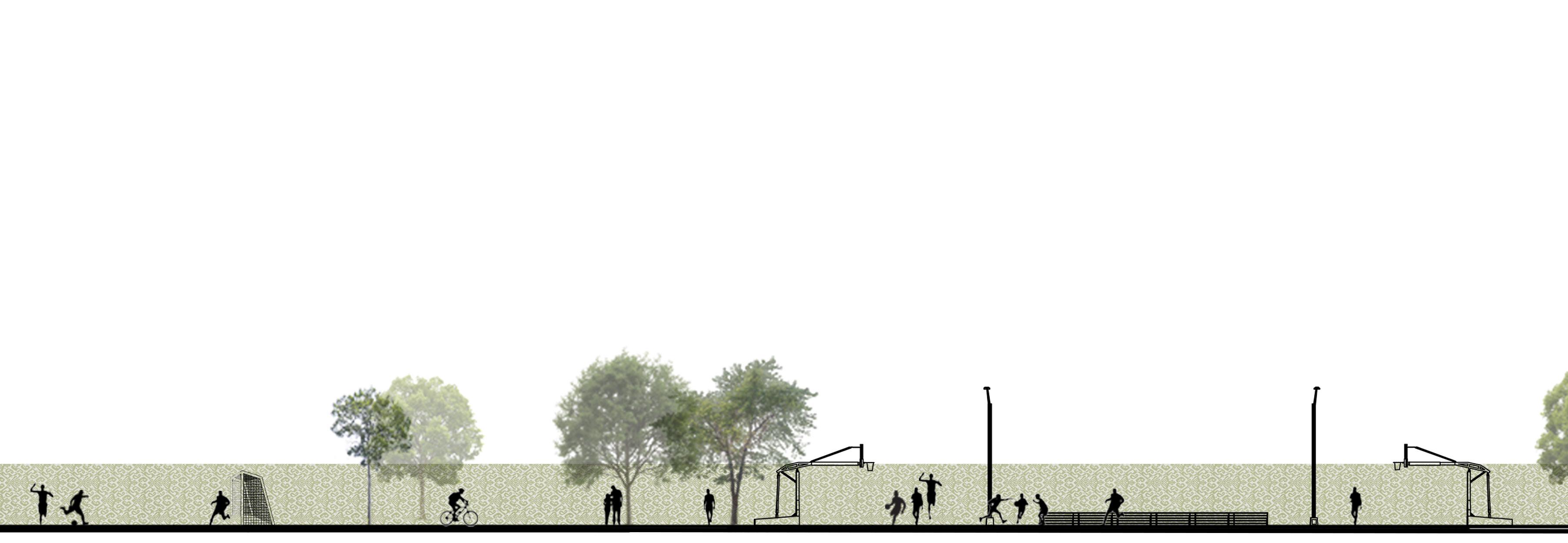 Housing will sustain a consistent level of activity in the sports district. Residents will be able to participate in various events, festivals, games, and public activities. By building up a local neighborhood, the public plaza will be bustling with activity: parents taking their children outside to play, students taking a break between classes, athletes recovering from a game, and sports fans grabbing a bite to eat.