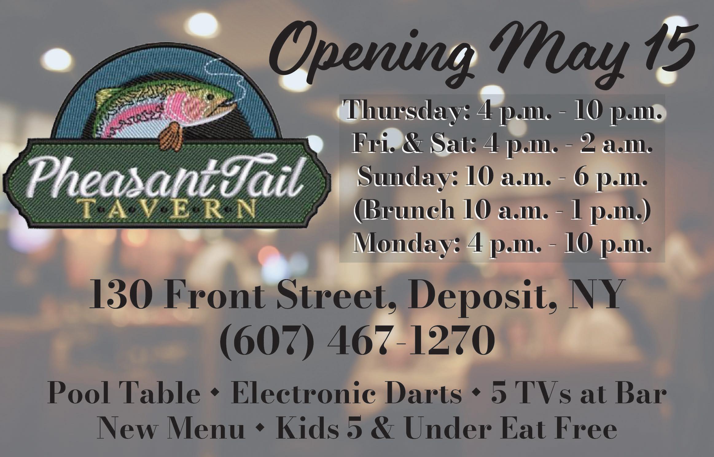 Open for food & drinks Thurs - Mon (607) 746-6677