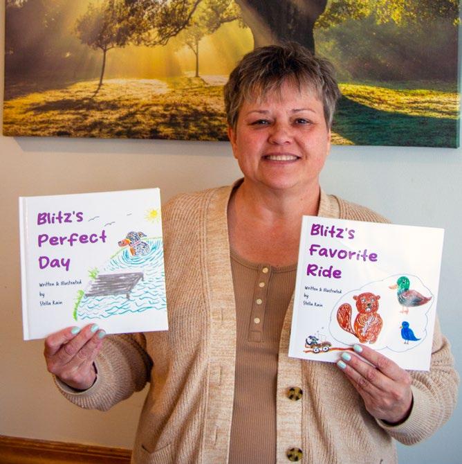 Local Author and Illustrator Tracy Wellman, also known as Stella Rain, shows copies of the picture books she has written about her dog Blitz.