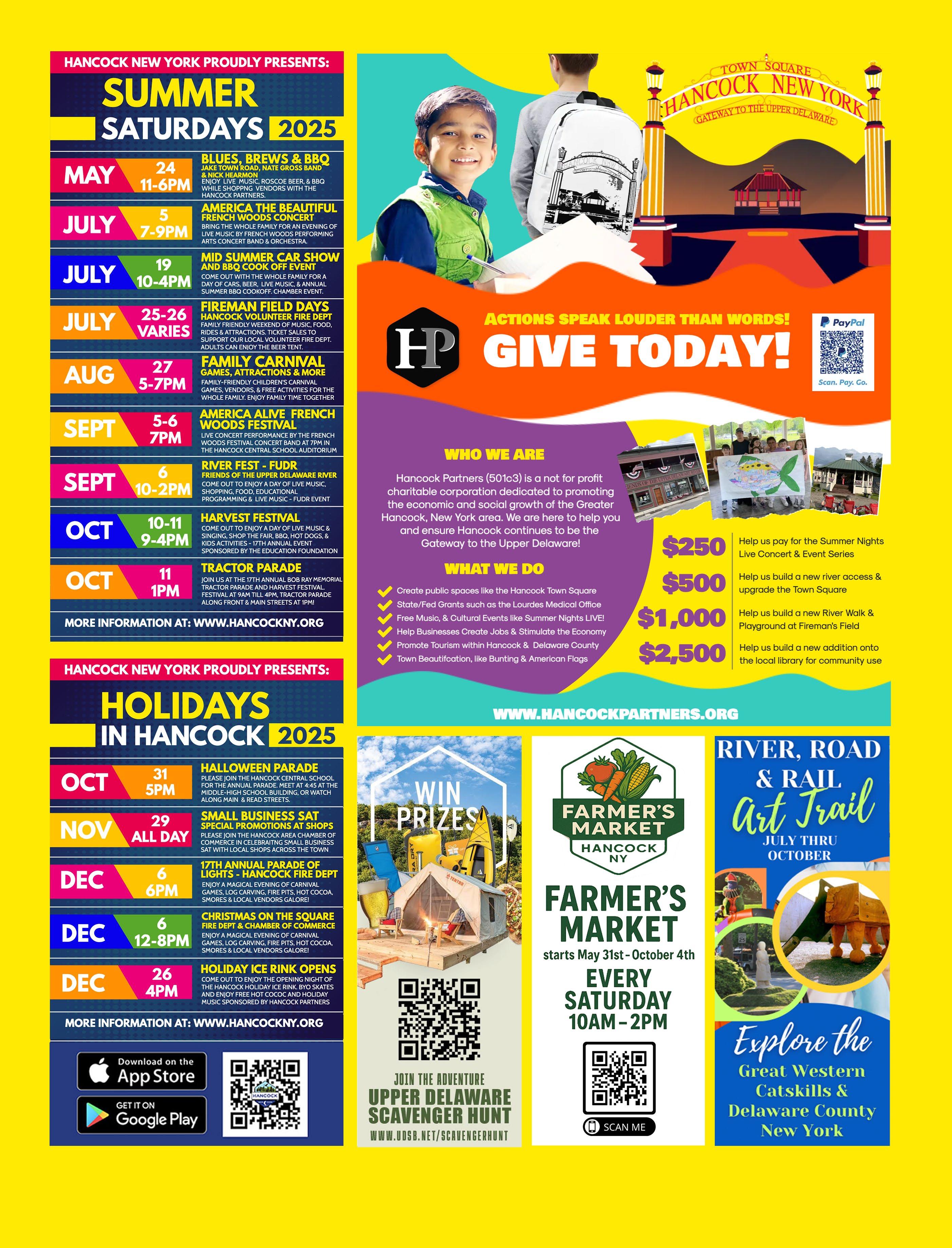 Save the Date! French Woods Festival of the Performing Arts free public concerts. “America Alive” at Hancock Central School on September 6 and performances in the Hancock Town Square on September 7.