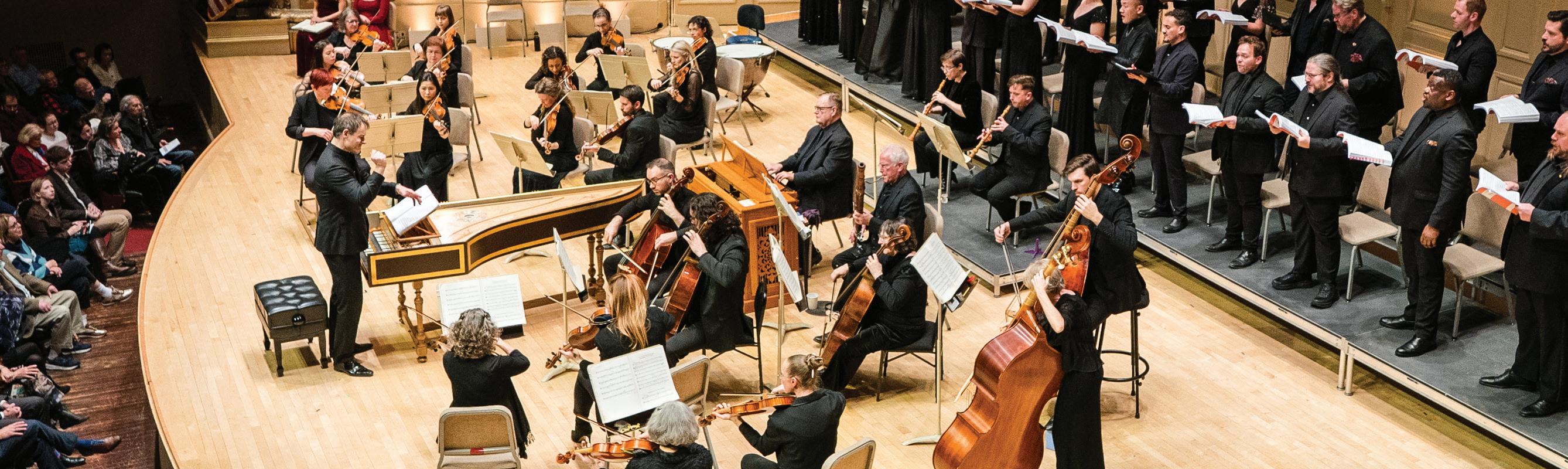Our orchestra plays on the period instruments these composers wrote for—winds made from wood, gut strings instead of steel, brass without valves, and more. After perfecting the historical techniques used to play them, these brilliant musicians know their instruments like old friends, creating nuanced sounds sure to draw you in closer. Our ensembles have just 25 to 50 members, bringing a rare sense of intimacy to each concert. Whether we’re singing a medieval chant or playing a 19th-century concerto, our musicians—among the global leaders in HIP— dust off the cobwebs. Even a beloved piece you’ve heard a hundred times can feel like a brand-new discovery.